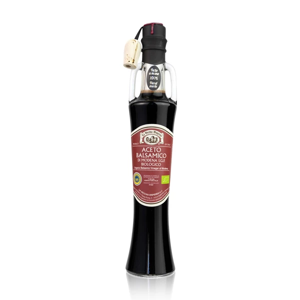 Mit diesem 15-jährigen Aceto Balsamico di Modena bordo kaufen Sie ein von La Vecchia Dispensa („Die Alte Speisekammer“) in liebevoller Handarbeit erzeugtes Produkt. Simone Tintori und dessen Eltern betreiben nicht nur eines der beliebtesten Restaurants in Castelvetro di Modena im Herzen der Emilia-Romagna. Sie haben auch eine fast schon obsessive Leidenschaft Essig herzustellen. Es ist Familientradition in einem langwierigen handwerklichen Prozess erstklassige Trebbiano-Trauben einzukochen und in wertvollen Edelholzfässern zu reifen.