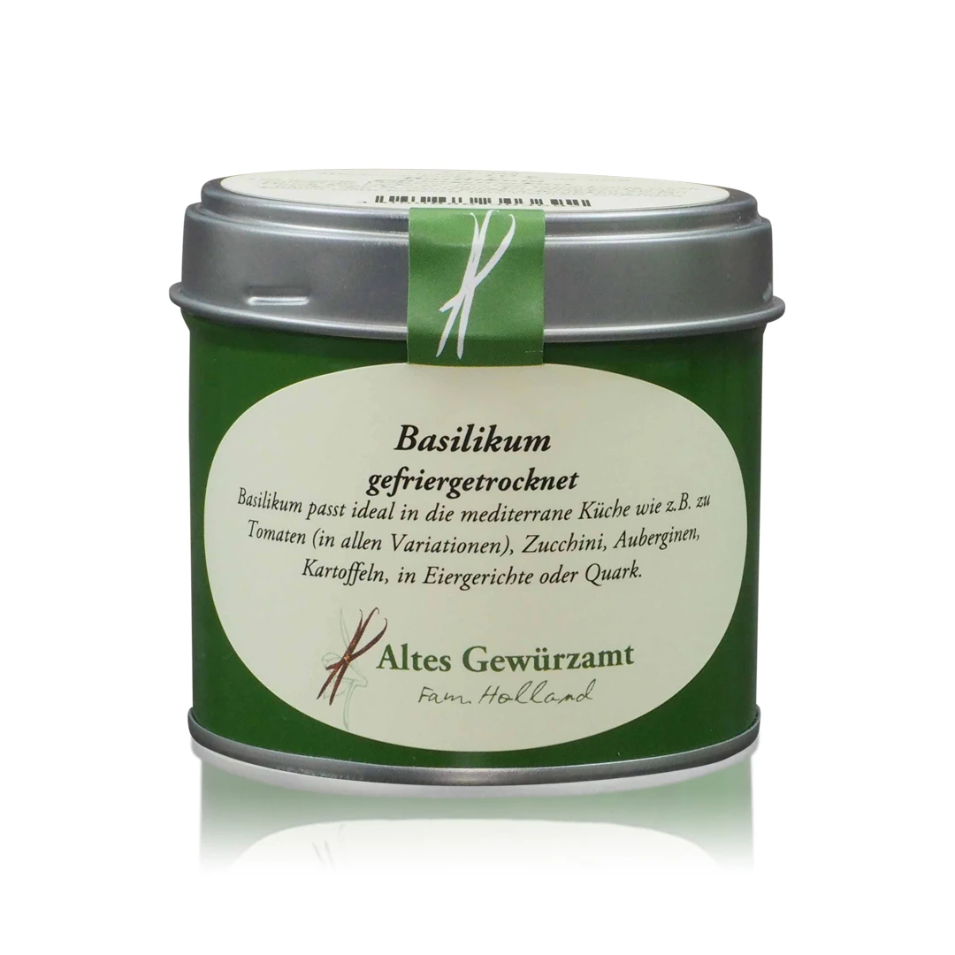 Mit diesem gefriergetrockneten Basilikum kaufen Sie ein von Altes Gewürzamt Ingo Holland sorgfältig ausgewähltes und zusammengestelltes Gewürz in bester Qualität. Gründer Ingo Holland – selbst langjähriger Spitzen- und Sternekoch – hatte irgendwann genug davon nur Gewürze kaufen zu können, die nicht seinem Qualitätsanspruch gerecht wurden. So entschloss er sich, selbst auf die Such nach besten Qualitäten von Gewürzen aus aller Welt zu gehen und diese in seiner eigenen Manufaktur handwerklich, schonend und sorgfältig zu verarbeiten. Berühmt auch seine Gewürzmischungen für Chili con Carne oder das italienisch toskanische Gewürzmischung für Pasta.