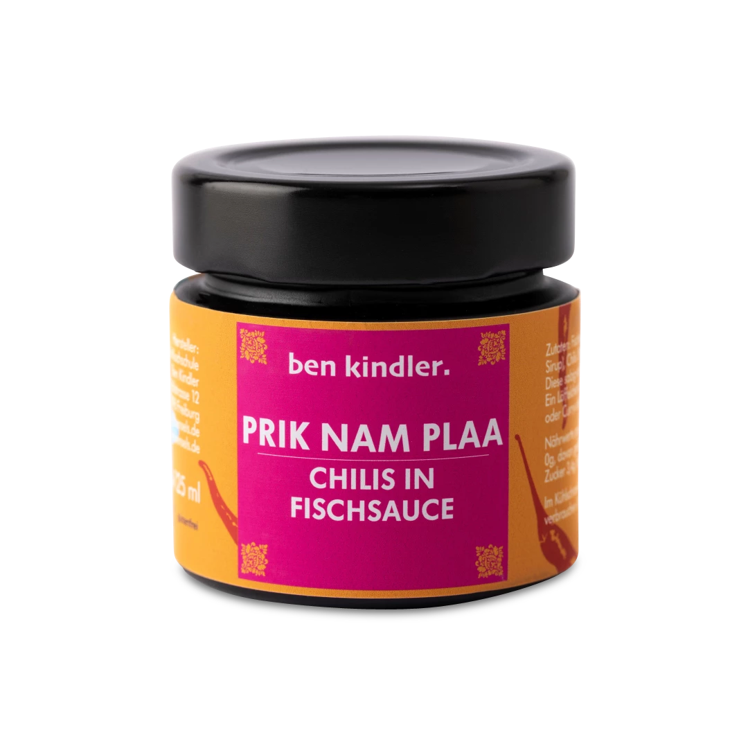 Mit BENKINDLER. Prik Nam Pla kaufen Sie ein von Ben Kindler persönlich ausgesuchtes Produkt. Ben Kindler ist ein junger unternehmerischer Koch, den man auf Anhieb sympathisch findet. Mit seiner offenen und herzlichen Art, seiner Passion für gutes, innovatives und weltoffenes Kochen hat er sich in kurzer Zeit in seiner Freiburger Kochschule eine große und stetig wachsende Fangemeinde erkocht. Die unter seinem Namen verkauften Produkte genügen höchsten professionellen Ansprüchen und wurden vom ihm persönlich ausgesucht. Ben Kindler geht es um „energievolles Essen von A bis Z“ – dass bedeutet keine Kompromisse in der Erzeugung, Verarbeitung und Qualität.