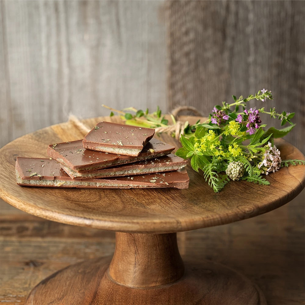 Lassen Sie sich den Geschmack des Salzburger Almsommers auf der Zunge zergehen. Genießen Sie diese Schokolade mit wertvollen, intensiven Almkräutern. Schließen Sie die Augen und träumen von 1800 bewirtschafteten Almen, 550 Almhütten mit Einkehrmöglichkeiten, prachtvollen Wiesen, romantischen Bergseen und eindrucksvollen Gipfeln.