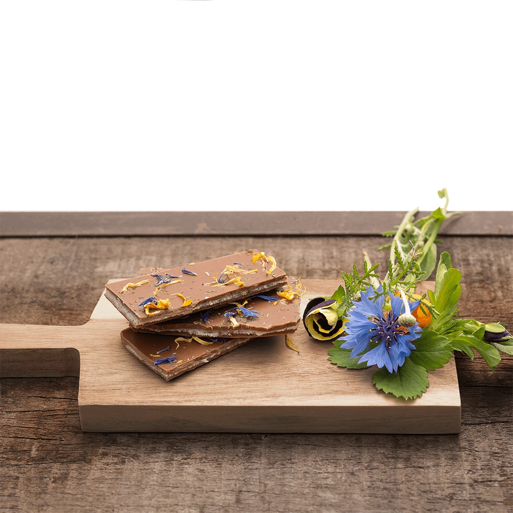 Vollmilchschokolade mit wertvollen Wiesenblumen