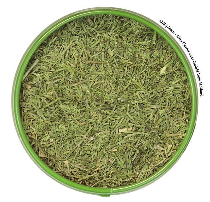 Mit diesen gefriergetrockneten Dillspitzen kaufen Sie ein von Altes Gewürzamt Ingo Holland sorgfältig ausgewähltes und zusammengestelltes Gewürz in bester Qualität. Gründer Ingo Holland – selbst langjähriger Spitzen- und Sternekoch – hatte irgendwann genug davon nur Gewürze kaufen zu können, die nicht seinem Qualitätsanspruch gerecht wurden. So entschloss er sich, selbst auf die Such nach besten Qualitäten von Gewürzen aus aller Welt zu gehen und diese in seiner eigenen Manufaktur handwerklich, schonend und sorgfältig zu verarbeiten. Berühmt auch seine Gewürzmischungen für Chili con Carne oder das italienisch toskanische Gewürzmischung für Pasta.