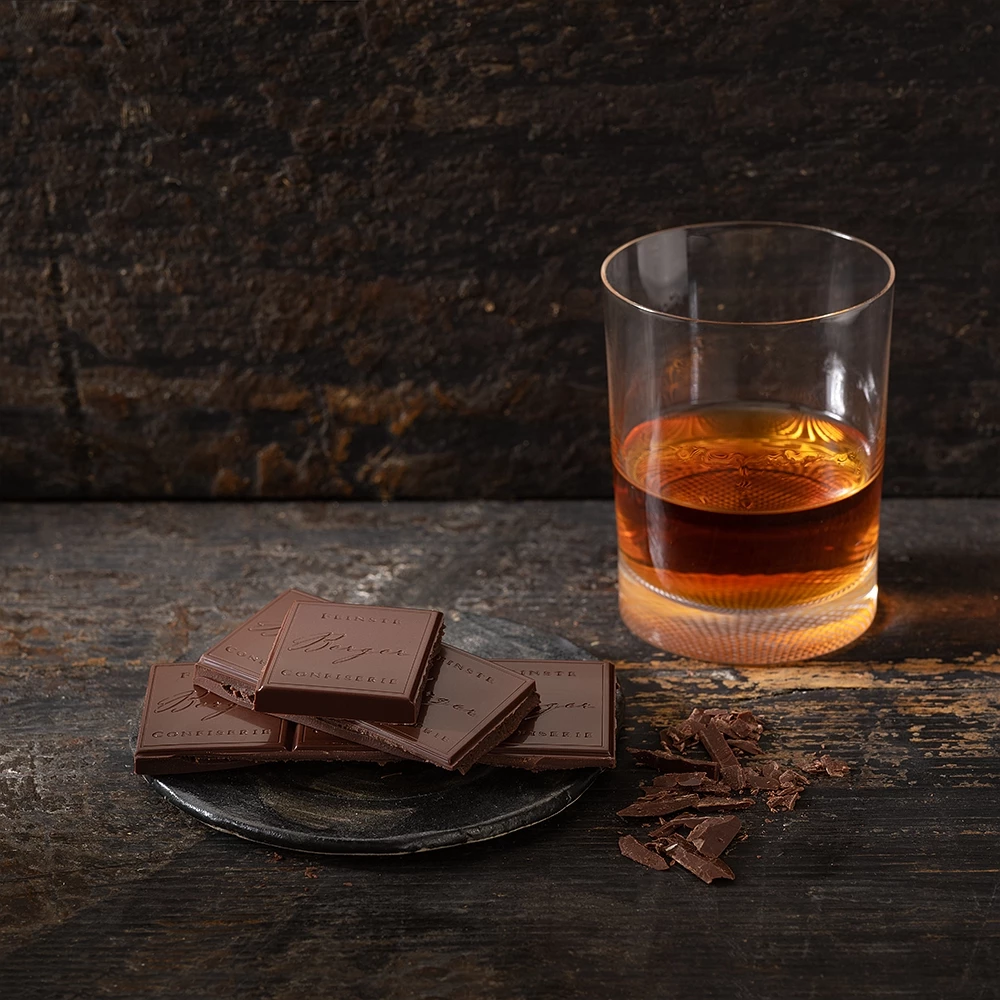 Edelbitter-Schokolade mit Rum-Creme-Füllung