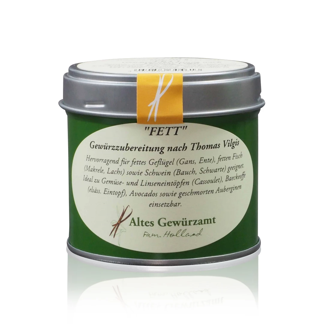 Mit dieser Gewürzmischung FETT nach Thomas Vilgis kaufen Sie ein von Altes Gewürzamt Ingo Holland sorgfältig ausgewähltes und zusammengestelltes Gewürz in bester Qualität. Gründer Ingo Holland – selbst langjähriger Spitzen- und Sternekoch – hatte irgendwann genug davon nur Gewürze kaufen zu können, die nicht seinem Qualitätsanspruch gerecht wurden. So entschloss er sich, selbst auf die Such nach besten Qualitäten von Gewürzen aus aller Welt zu gehen und diese in seiner eigenen Manufaktur handwerklich, schonend und sorgfältig zu verarbeiten. Berühmt auch seine Gewürzmischungen für Chili con Carne oder das italienisch toskanische Gewürzmischung für Pasta.