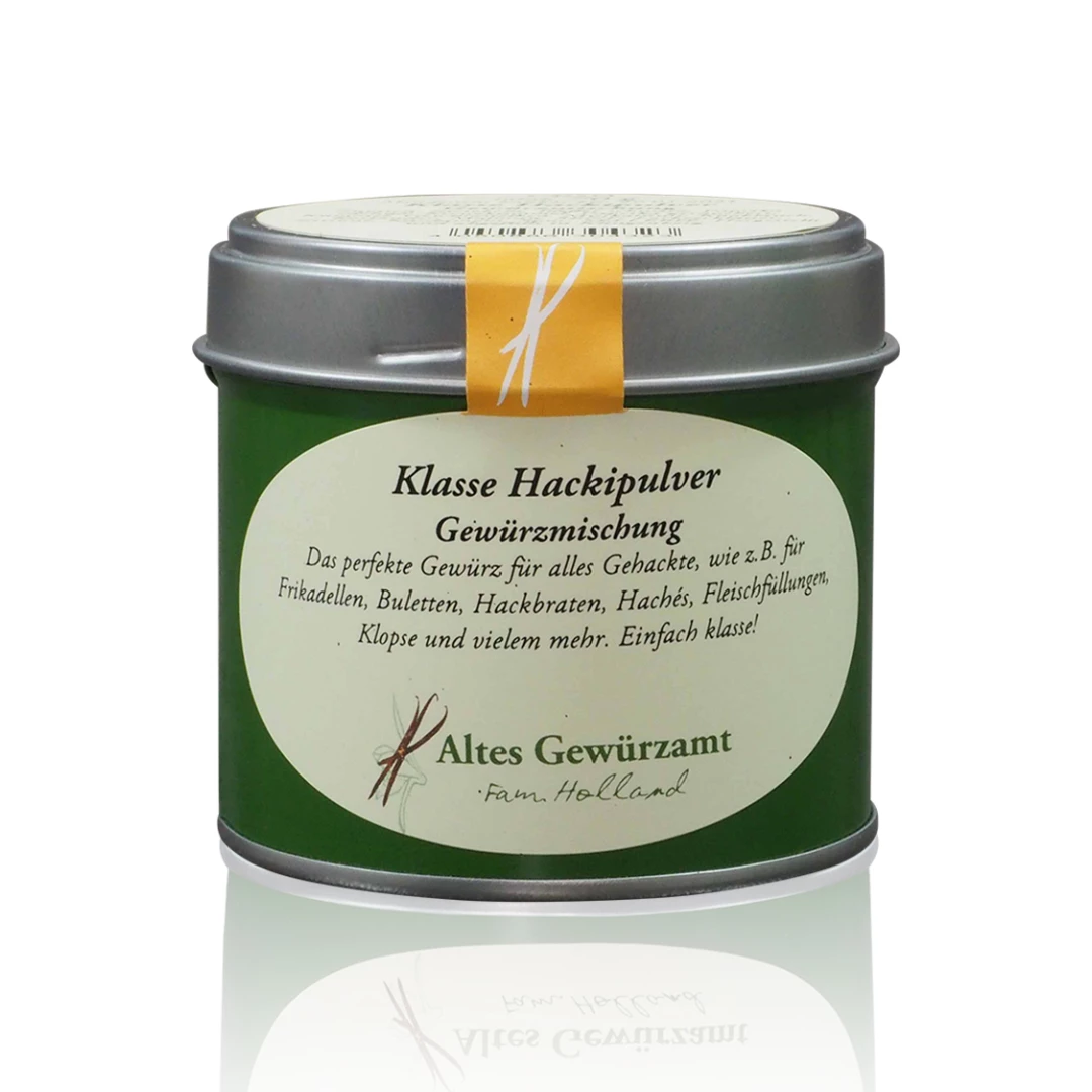 Mit diesem Klasse Hackipulver kaufen Sie ein von Altes Gewürzamt Ingo Holland sorgfältig ausgewähltes und zusammengestelltes Gewürz in bester Qualität. Gründer Ingo Holland – selbst langjähriger Spitzen- und Sternekoch – hatte irgendwann genug davon nur Gewürze kaufen zu können, die nicht seinem Qualitätsanspruch gerecht wurden. So entschloss er sich, selbst auf die Such nach besten Qualitäten von Gewürzen aus aller Welt zu gehen und diese in seiner eigenen Manufaktur handwerklich, schonend und sorgfältig zu verarbeiten. Berühmt auch seine Gewürzmischungen für Chili Con Carne oder das italienisch toskanische Gewürzmischung für Pasta.