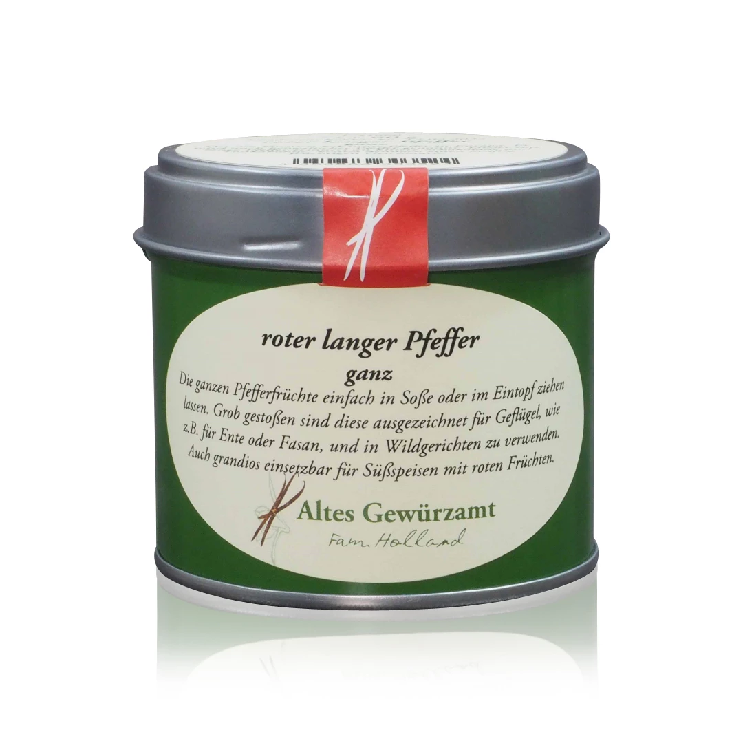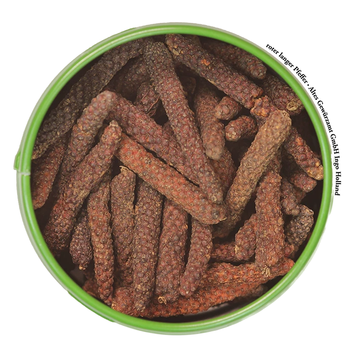 Mit diesem roten Langer Pfeffer kaufen Sie ein von Altes Gewürzamt Ingo Holland sorgfältig ausgewähltes und zusammengestelltes Gewürz in bester Qualität. Gründer Ingo Holland – selbst langjähriger Spitzen- und Sternekoch – hatte irgendwann genug davon nur Gewürze kaufen zu können, die nicht seinem Qualitätsanspruch gerecht wurden. So entschloss er sich, selbst auf die Such nach besten Qualitäten von Gewürzen aus aller Welt zu gehen und diese in seiner eigenen Manufaktur handwerklich, schonend und sorgfältig zu verarbeiten. Berühmt auch seine Gewürzmischungen für Chili con Carne oder das italienisch toskanische Gewürzmischung für Pasta.