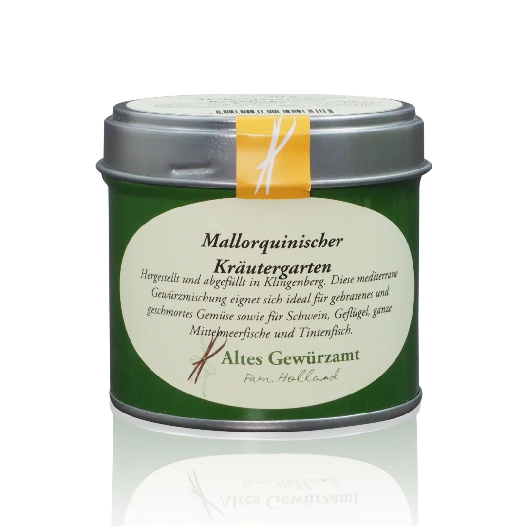 Mit dieser Gewürzzubereitung Mallorquinischer Kräutergarten kaufen Sie ein von Altes Gewürzamt Ingo Holland sorgfältig ausgewähltes und zusammengestelltes Gewürz in bester Qualität. Gründer Ingo Holland – selbst langjähriger Spitzen- und Sternekoch – hatte irgendwann genug davon nur Gewürze kaufen zu können, die nicht seinem Qualitätsanspruch gerecht wurden. So entschloss er sich, selbst auf die Such nach besten Qualitäten von Gewürzen aus aller Welt zu gehen und diese in seiner eigenen Manufaktur handwerklich, schonend und sorgfältig zu verarbeiten. Berühmt auch seine Gewürzmischungen für Chili con Carne oder das italienisch toskanische Gewürzmischung für Pasta.