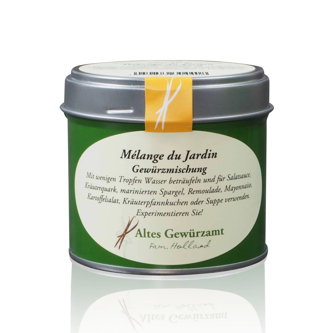 Mit dieser Gewürzmischung Mélange du Jardin kaufen Sie ein von Altes Gewürzamt Ingo Holland sorgfältig ausgewähltes und zusammengestelltes Gewürz in bester Qualität. Gründer Ingo Holland – selbst langjähriger Spitzen- und Sternekoch – hatte irgendwann genug davon nur Gewürze kaufen zu können, die nicht seinem Qualitätsanspruch gerecht wurden. So entschloss er sich, selbst auf die Such nach besten Qualitäten von Gewürzen aus aller Welt zu gehen und diese in seiner eigenen Manufaktur handwerklich, schonend und sorgfältig zu verarbeiten. Berühmt auch seine Gewürzmischungen für Chili con Carne oder das italienisch toskanische Gewürzmischung für Pasta.