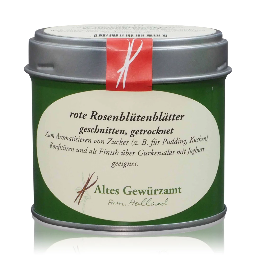 Mit dieser Rosenblütenblätter rot kaufen Sie ein von Altes Gewürzamt Ingo Holland sorgfältig ausgewähltes und zusammengestelltes Gewürz in bester Qualität. Gründer Ingo Holland – selbst langjähriger Spitzen- und Sternekoch – hatte irgendwann genug davon nur Gewürze kaufen zu können, die nicht seinem Qualitätsanspruch gerecht wurden. So entschloss er sich, selbst auf die Suche nach besten Qualitäten von Gewürzen aus aller Welt zu gehen und diese in seiner eigenen Manufaktur handwerklich, schonend und sorgfältig zu verarbeiten.