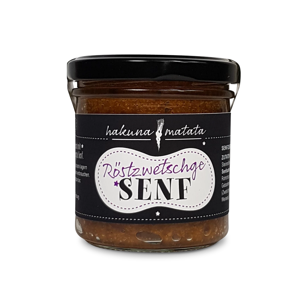 Mit diesem Röstzwetschgen-Senf kaufen Sie ein von Hakuna Matata Freiburg in Handarbeit gefertigtes Produkt. Die beiden Köche Michael Hofer und Philip Klingel haben mit Ihrer Freiburger Manufaktur Hakuna Matata die traditionelle Einmachkunst entstaubt. Täglich produzieren sie von Hand Eingewecktes und Eingekochtes – mal zeitgemäß, dann extravagant oder auch klassisch. Hakuna Matata nutzt ausschließlich Produkte der Saison – Erdbeermarmelade im Winter kochen oder Zitrusfrüchte im Sommer zu verarbeiten sind keine Option. Aber die Produkte der Freiburger Manufaktur, die gibt es ganzjährig bei uns im Viktualien.shop.