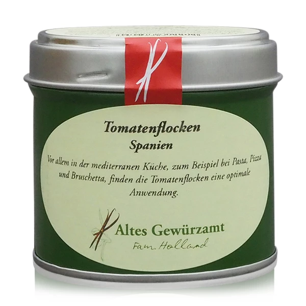 Mit diesen Tomatenflocken kaufen Sie ein von Altes Gewürzamt Ingo Holland sorgfältig ausgewähltes und zusammengestelltes Gewürz in bester Qualität. Gründer Ingo Holland – selbst langjähriger Spitzen- und Sternekoch – hatte irgendwann genug davon nur Gewürze kaufen zu können, die nicht seinem Qualitätsanspruch gerecht wurden. So entschloss er sich, selbst auf die Suche nach besten Qualitäten von Gewürzen aus aller Welt zu gehen und diese in seiner eigenen Manufaktur handwerklich, schonend und sorgfältig zu verarbeiten. Toskanisches Pastagewürz von Altes Gewürzamt oder das allseits beliebte Curry Anapurna mit pikanter Schärfe.