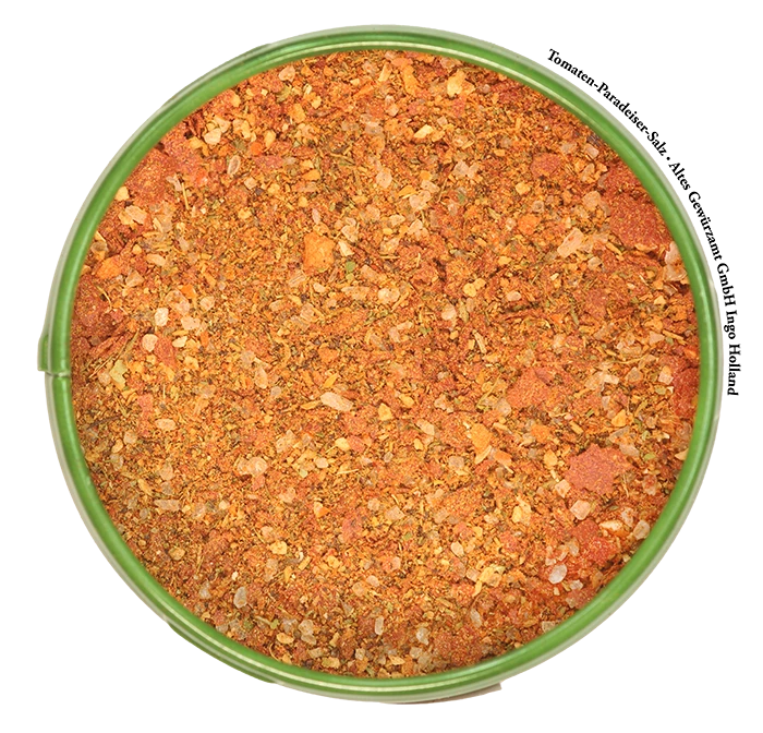 Mit diesem Tomatensalz / Paradeisersalz kaufen Sie ein von Altes Gewürzamt Ingo Holland sorgfältig ausgewähltes und zusammengestelltes Gewürz in bester Qualität. Gründer Ingo Holland – selbst langjähriger Spitzen- und Sternekoch – hatte irgendwann genug davon nur Gewürze kaufen zu können, die nicht seinem Qualitätsanspruch gerecht wurden. So entschloss er sich, selbst auf die Such nach besten Qualitäten von Gewürzen aus aller Welt zu gehen und diese in seiner eigenen Manufaktur handwerklich, schonend und sorgfältig zu verarbeiten. Berühmt auch seine Gewürzmischungen für Chili con Carne oder das italienisch toskanische Gewürzmischung für Pasta.