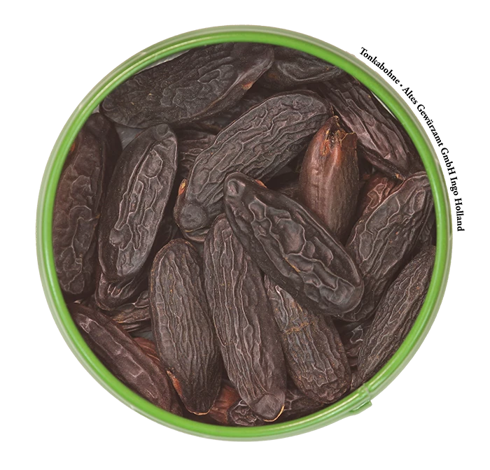 TIPP: Das Aroma der Tonkabohne ist sehr intensiv – daher bitte sorgsam und gering dosieren. Zum Würzen wird die Tonkabohne auf einer Muskatreibe fein abgerieben. Eine andere Möglichkeit ist es die Tonkabohne grob zu brechen und z.B. in Sahne ziehen lassen bis das gewünschte Aroma erreicht ist; danach alle Stücke entfernen!